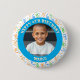 Botão do menino de aniversário. Feliz Aniversário para você, adicione nome, idade e foto a este botão personalizado de aniversário. Fundo azul, laranja, verde limão e branco.