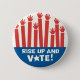 Levante-se e vote! É hora de se envolver. Botões de voto vistas em jaquetas, mochilas, etc. para encorajar outros a se registrarem e votarem nas eleições de 2020!