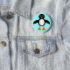 Este divertido botão de Natal apresenta um personagem de pinguim bonitinho com uma barriga branca, grandes olhos azuis com pupilas pretas e pés cor de laranja e bico. Esta pequena ave de inverno encantadora encanta crianças e adultos. O pinguim se senta sobre um fundo azul pálido e gelado para lembrá-lo de sua casa ártica infantil.