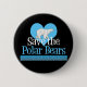 Um belo urso polar branco no centro de um bonito coração azul acima do texto SALVE OS BARRAS POLAR em branco e azul. Este bonitinho botão de urso polar é um bonitinho de estocar para uma garota que gosta de animais.