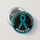 Botão Preto da Fita Guerreira PCOS para sensibilização e apoio às mulheres que lutam contra a síndrome do ovário policístico.
