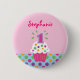 Botão bonito e colorido perfeito para a festa de aniversário de uma garota. Apresenta um cupcake com o número 1 no topo. Doce design perfeito para sua garotinha vestir na festa dela. Personalize-o com o nome do seu filho.