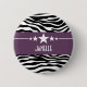 Tendy e moderno Sassy Star Zebra Button com um fundo de impressão em preto-e-branco chico e uma borda roxa ousada adornada com um divertido motivo de estrela. Este design feminino pode ser personalizado com o texto personalizado de sua escolha. Clique em "Personalizar" para encontrar mais opções de personalização.