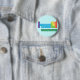 Botão com mesa periódica dos elementos, com cada grupo de elementos marcado em cores arco-íris.