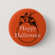 Feliz botão das bruxas do Dia das Bruxas. É Orange e Black Happy Halloween com um gato preto gritante que pode ser personalizado para adicionar nomes, texto ou afirmações. Clique em "personalizar" para adicionar o seu. É excelente para presentes e guloseimas de Halloween divertidos!