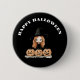 Botão de bruxa Assustada Feliz Halloween. É Orange e Black Happy Halloween com um gato preto gritante que pode ser personalizado para adicionar nomes, texto ou afirmações. Clique em "personalizar" para adicionar o seu. É excelente para presentes e guloseimas de Halloween divertidos!
