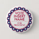 Quer esteja a fazer campanha para liderar o país, a sua cidade, a sua escola, o seu trabalho, ou a apoiar independentemente o seu candidato favorito, este botão que chama a atenção será notado. Personalize facilmente este botão com seu próprio nome e título ou outro texto personalizado. Este design apresenta cores vermelha, branca e azul com um círculo de estrelas brancas. (Dica: para um título candidato de duas palavras, como "Vice-Presidente", você pode alterar a palavra "Para" para "Vice".) Nenhuma quantidade mínima de ordem e nenhuma taxa de configuração.