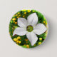 Este botão apresenta uma flor branca adorável, florescente, com tinturas muito pálidas e um centro verde claro. É colocado contra um campo de calendários de ouro e folhagem verde.