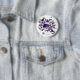Este botão de basquete divertido apresenta uma "explosão" de tamanho variado, roxo, cinzas e cestos brancos e formas de estrelas roxas e cinzas - personalize com o nome do atleta & número de camisa - por katz_d_zynes
