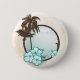 Design bonito com as silhuetas estilizados das flores e das palmeiras do hibiscus felicitadas por uma cor azul bonita em um círculo. Pouca aflição foi adicionada à cor para dar-lhe alguma "potência". Escreva-lhe o nome ou uma mensagem pequena no círculo ou deixe-a como é.