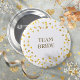 Semelhado com delicado confete de corações de amor dourados, este botão chique é uma maneira elegante de identificar as pessoas importantes no seu chá de noiva e no dia do casamento. Incluindo, noiva, noivo, recepcionista, mãe ou pai da noiva ou noivo, damas de honra, padrinho ou qualquer outra pessoa que seja importante no seu dia especial. Criado por Thisisnotme©