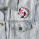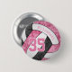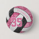 Esta equipe colorido o botão de voleibol apresenta a imagem realista de um voleibol preto-e-branco estilizado que tem um padrão caleidoscópico floral artístico misturado com seus painéis rosa e preto - personalize com o nome do atleta e o número de camisa - por katz_d_zynes