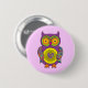 Abotoe o crachá com uma coruja psicadélico dos desenhos animados bonitos em cores do roxo, do verde limão e do arco-íris.