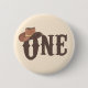 Este é um Botão de primeiro aniversario do Chapéu do Cowboy. Cowboys oeste do Oeste Selvagem, Meu primeiro aniversário, dia b, dia 1, ideias de aniversário, marrom, meu primeiro rodeio