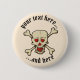 Esboço de desenho do crânio bege com corações. Dois campos de texto em círculo.