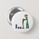 Um jogador de croquet segura o mallet e alinha as bolas prontas para jogar um tiro no aro. Gráfico divertido para um jogo popular para quando a grama está caindo e o tempo está bom. Mallet de madeira, bolas vermelhas e azuis, e aro são fotografados como um especialista se posiciona sobre o tiro.