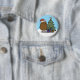 A cute Christmas badge, pin featuring a cartoon potato in a whimsical Christmas scene. The potato is in front of a Christmas tree that has lights attached and a star on top. Ideal for a holiday stocking filler.