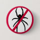 O anti botão engraçado da aranha tem uma aranha da viúva negra cercada por um círculo vermelho com um corte através dele.