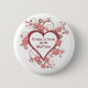 Vista seu amor para todos verem. Este botão de pinback tem um bonito rosa aberto empoeirado cercado por folhas graciosamente curvas e flores cor-de-rosa. O texto no centro diz "Louco apaixonado por —" Você pode editar o texto. Você pode alterar o texto e a fonte ou cor da fonte. A cor de fundo também pode ser alterada.