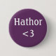Um crachá roxo de "coração de Hathor". Hathor era a deusa egípcia antiga do amor, riso, alegria e música, e ela tinha a cabeça de uma vaca.