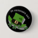 Este botão colorido apresenta um design central de um grande chapéu verde de Leprechaun, com vergonhas sobre fundo preto. Um acessório de excelente para o Dia de Patrick da Rua.