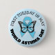 Dia Mundial da Asma, botão de feriado de saúde com fita de conscientização e borboleta.