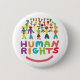 Design de Direitos Humanos mostra uma variedade de pessoas celebrando humanidade, amizade e igualdade, com um grande slogan de "Direitos Humanos" abaixo. Uma mensagem clara de apoio a um mundo justo.