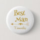 Honre o padrinho com estilo com este elegante botão de casamento personalizado. Com letras em tom dourado e um charmoso motivo de coração com flecha, este souvenir é impresso com o nome do padrinho - perfeito para as festividades pré-casamento e celebrações do dia.