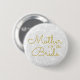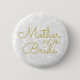 Casamento elegante com flores brancas e a inscrição dourada Mãe da Noiva, o botão personalizado de desenho do pinback. Padrão floral de noiva simples. Personalize sua tipografia. Clássico, chico, elegante, moderno, moda, na moda, lindo metal suculento. Para alterar o script, clique em editar design. Imagem copyright Marg Seregelyi Fotografia.
