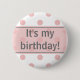 Projetado especialmente para a aniversariante, este botão de pino apresenta bolinhas cor-de-rosa embelezadas com uma fita cor-de-rosa e as palavras "É Meu Aniversário!" Você pode editar o texto com sua própria mensagem pessoal, se quiser.