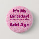 O aniversário personalizado abotoa-se para que meninos, meninas e os adultos dêem-lhe o reconhecimento ele ou em seu aniversário. Adicione simplesmente seus nome e idade para criar um botão personalizado do aniversário para essa festa de aniversário.