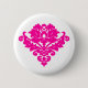 Um motif damask muito elegante inspirado por um design antigo em cor-de-rosa giro e quente em um pequeno pino redondo giro no botão.