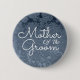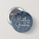 Mãe de Casamento do Botão personalizado de Pinback. Padrão floral branco-azul empoeirado personaliza sua tipografia. Clássico, chico, elegante, moderno, moda, na moda, lindo metal suculento. Para alterar a tipografia, clique em editar design. Imagem copyright Marg Seregelyi Fotografia.