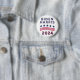 Botão na moda pinback mostrando apoio à continuada escolha dos Democratas para a Casa Branca: Joe Biden e Kamala Harris. Tipografia patriótica, vermelha e azul para as eleições presidenciais de 2024