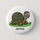 Engraçado, esquisito, tartaruga de desenho animado, crachá personalizado / pin. Esta tartaruga fofa tem uma expressão cômica no seu rosto, uma carapaça verde e um corpo marrom. As palavras "James" em letras negras estão abaixo da tartaruga, esta é uma modelo para adicionar seu próprio nome a personalizar.