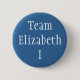 Um crachá azul com texto branco lendo "Equipe Elizabeth I". Elizabeth era filha do Rei Henrique VIII da Inglaterra e sua segunda esposa, Anne Bolena. Ela morreu em 1603 em Richmond, Inglaterra.