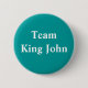 Um crachá teal com texto branco que lê "Rei da Equipe John". John herdou o trono do irmão Richard I também conhecido por Richard The LionHeart. Ele foi manchado em filmes infantis modernos através do Robin Hood da Disney, que o representou como um leão que sugava o dedo e chorava por sua mãe. Na verdade, John não era o mais amado dos reis da Inglaterra, mas ele passou mais tempo no país do que seu irmão, então pelo menos eles não precisavam levantar impostos para financiar um resgate!