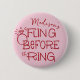 Reúna as amigas da noiva, damas de honra, irmãs, tias e mais para uma celebração de despedida de solteira com este adesivo moderno "farra antes do anel" vermelho e rosa. Elementos desenhados à mão, como texto e um anel de noivado de diamante, juntamente com fontes estilo caligrafia, dão a este botão de festa de despedida de solteira personalizado um visual moderno.