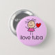 Todos ama uma tuba e este botão da tuba do divertimento com figura menina da vara e slogan da tuba do ilove deixa-o compartilhar de sua paixão da tuba com o mundo. Os botões da música fazem grandes stuffers da meia demasiado.