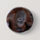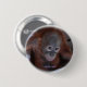 Um orangotango pequeno olha acima na câmera do regaço de seu cuidador humano.