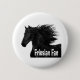 Retrato de um garanhão preto bonito do frisão com juba de fluxo longa, fotografado e projetado por Magdalena Strakova. Inscrição: Fã do frisão. Presente original e original para cada amante do cavalo do frisão!