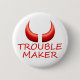 Fabricante de problema com o botão customizável dos chifres do diabo. Círculo, quadrado, pequeno ou grande… sua escolha.
