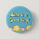 Faça lhe um grande dia características inspiradas e inspirando do botão flores cor-de-rosa e amarelas coloridas com texto amarelo. Aperfeiçoe o botão para que as pessoas de motivação façam-lhe um grande dia! O botão agradável para recepcionistas, enfermeiras, doutores, dentistas, vestindo-se na igreja, verifica para fora caixeiros, empregados, chefes, voluntários e mais.