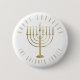 Este botão apresenta uma menorah dourada e a mensagem acima lê "Happy Chanukah". Abaixo da menorah está um lugar para seu nome familiar que você pode personalizar ou remover se quiser.