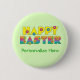 Felz pascoa. Uma Páscoa bonita e alegre saudação em uma nome de etiqueta bonito. A palavra Happy está em um amarelo alegre e alegre, e a palavra Páscoa está em um arco-íris mbre de cor. Ambas são aspergidas com flores. Personalizável, você pode personalizar o texto em nosso modelo fácil de usar. Você pode mudar a cor de fundo se quiser. Quer este ou um design semelhante em outro item? Visite o meu compro.