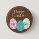 Belo design Felz pascoa num círculo castanho de chocolate, com ovos pintados.