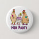 Festa de Despedida de Solteira ou Noite das Galinhas mostra três galinhas fora celebrando o próximo casamento. A noiva usa uma coroa e véu e suas amigas estão lá para apoiá-la.