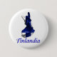 ' Botão de Finlandia com imagem do esboço do país colorido com a bandeira finlandesa.