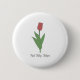 Um botão com uma ilustração botânica da flor vermelha de tulipa em cores pastel e um texto personalizável: perfeito para um presente de aniversário. Tulipa é a flor de nascimento de abril, a flor de Aries e é significados simbólicos de amor perfeito e profundo.