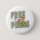 Free Press design mostra as palavras que estão sendo gritadas por um jornalista puxado à mão com touros - deixe-os falar!